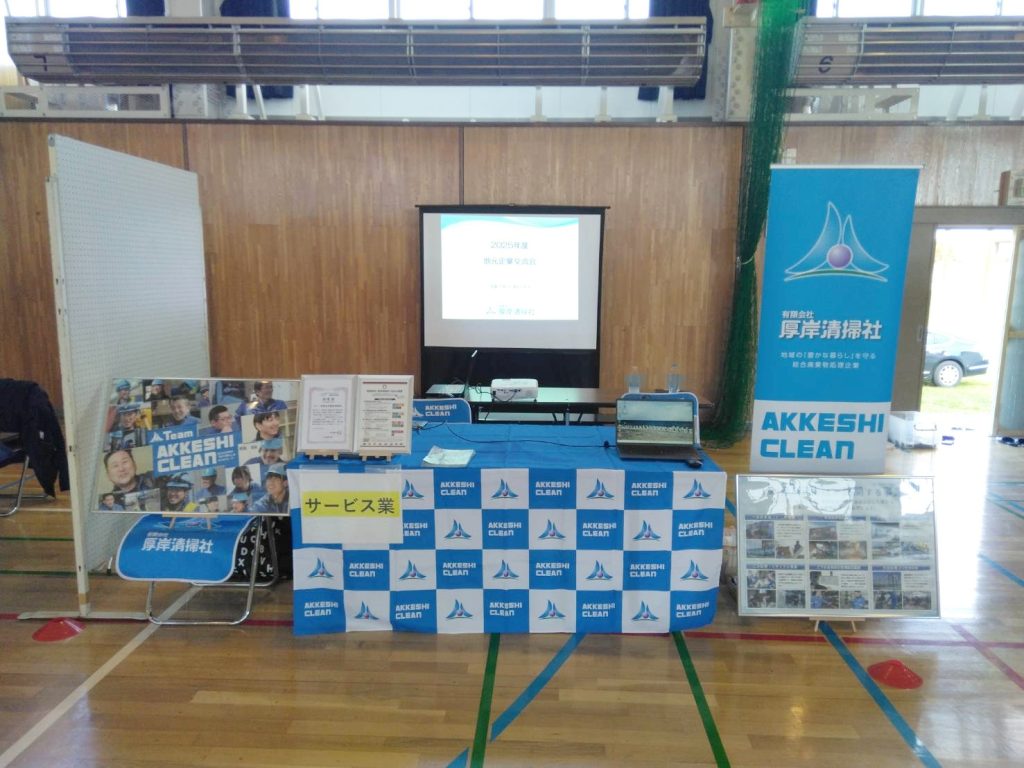 2025.10.28 お知らせ 令和7年度地元企業交流会に参加しました 令和7年度10月22日(木)、厚岸町立真龍中学校にて、町内中学1~2年生を対象に、町内11業種の企業が参加、弊社はサービス業として参加しました。 具体的な仕事内容や、弊社が行っている社会的取り組みなどをまとめた資料をみてもらいながら説明を行いました。